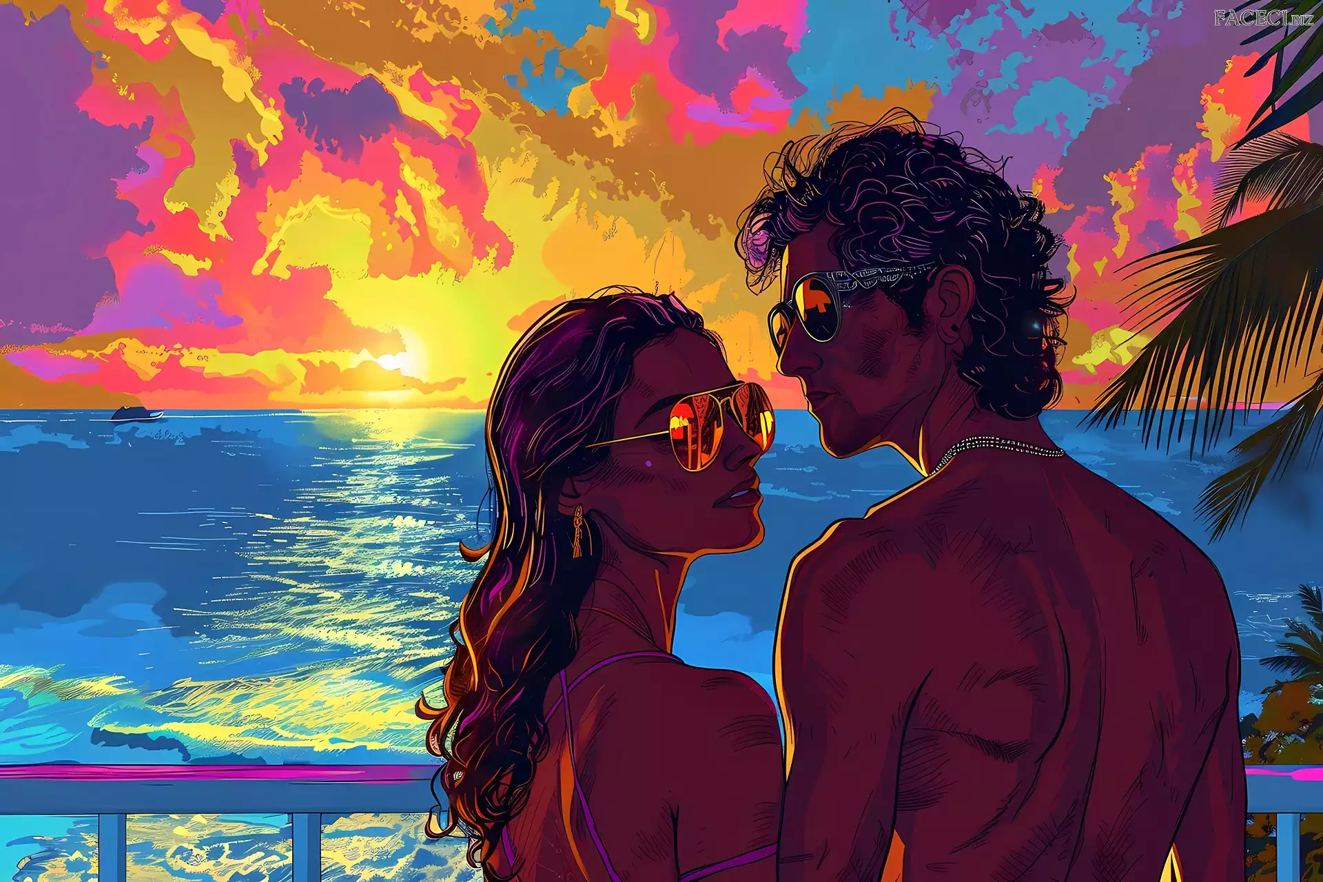 Zachód słońca, Morze, Grafika AI, Kobieta, Mężczyzna - faceci.biz